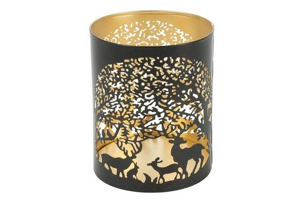 De metalen windlichten van Countryfield met uitgesneden hertenmotief. De zwarte buitenkant en gouden binnenkant zorgen samen voor een warme gloed en een sfeervol lichtspel. Perfect voor extra gezelligheid tijdens de wintermaanden, zowel apart als in set te gebruiken.
