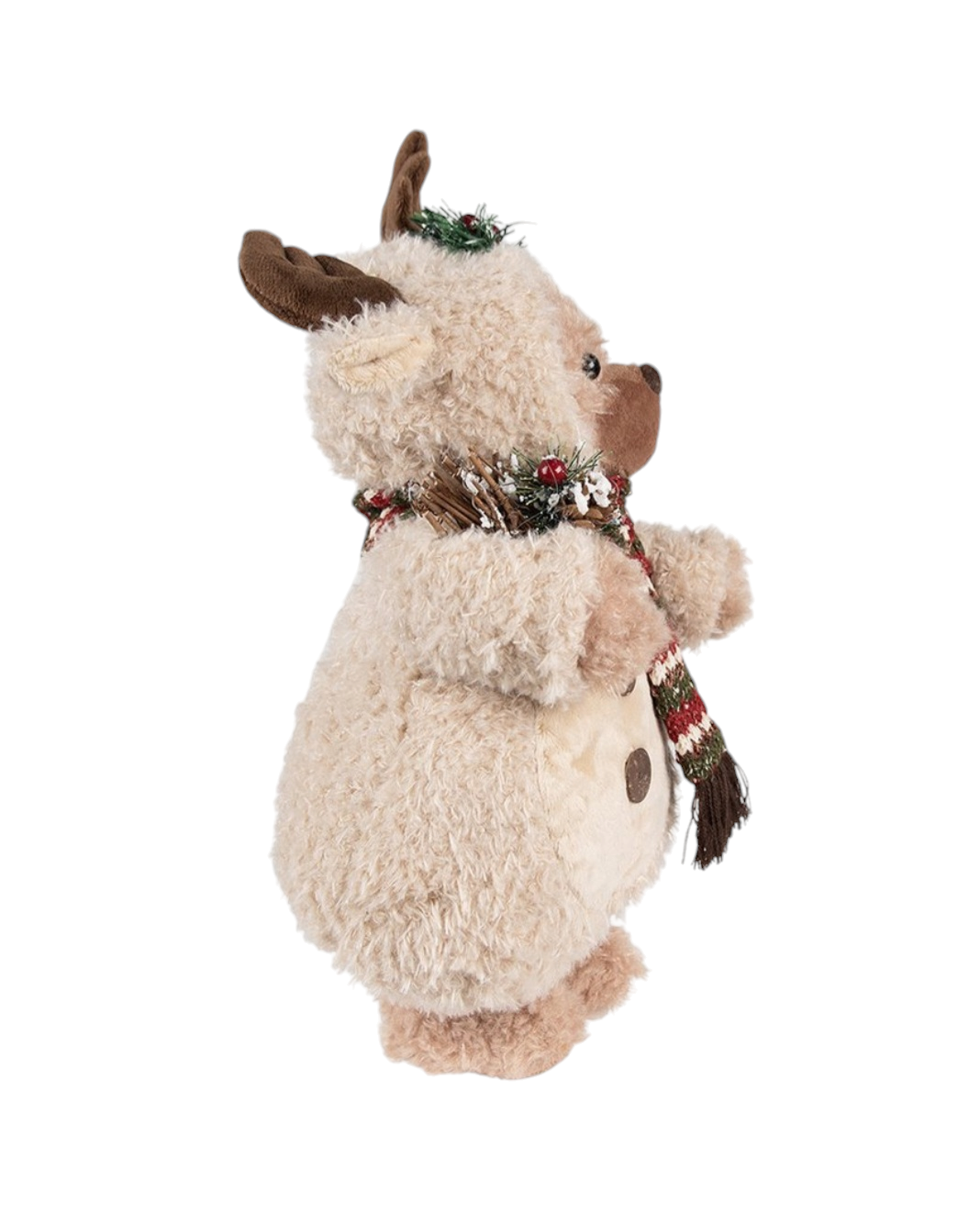 Een beige beeld van een beer, een buitengewone kerstversiering. Geeft een kerstsfeer in elk huis. Een kerstversiering die bij elke stijl past.