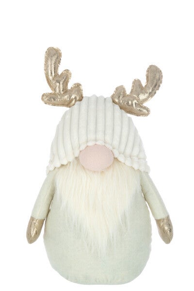 De J-Line Kabouter met Gewei in wit pluche is een speelse en stijlvolle toevoeging aan je winterdecoratie. Deze schattige kabouter, gehuld in zacht wit pluche, straalt warmte en gezelligheid uit. Met zijn charmante gewei en vriendelijke uitstraling is hij perfect om een feestelijke en sfeervolle touch te geven aan je interieur. Zet hem op een bijzettafel, bij de open haard of tussen je kerstdecoraties en laat deze kabouter het middelpunt worden van je winterse sfeer. Een absolute must-have voor de feestdagen!