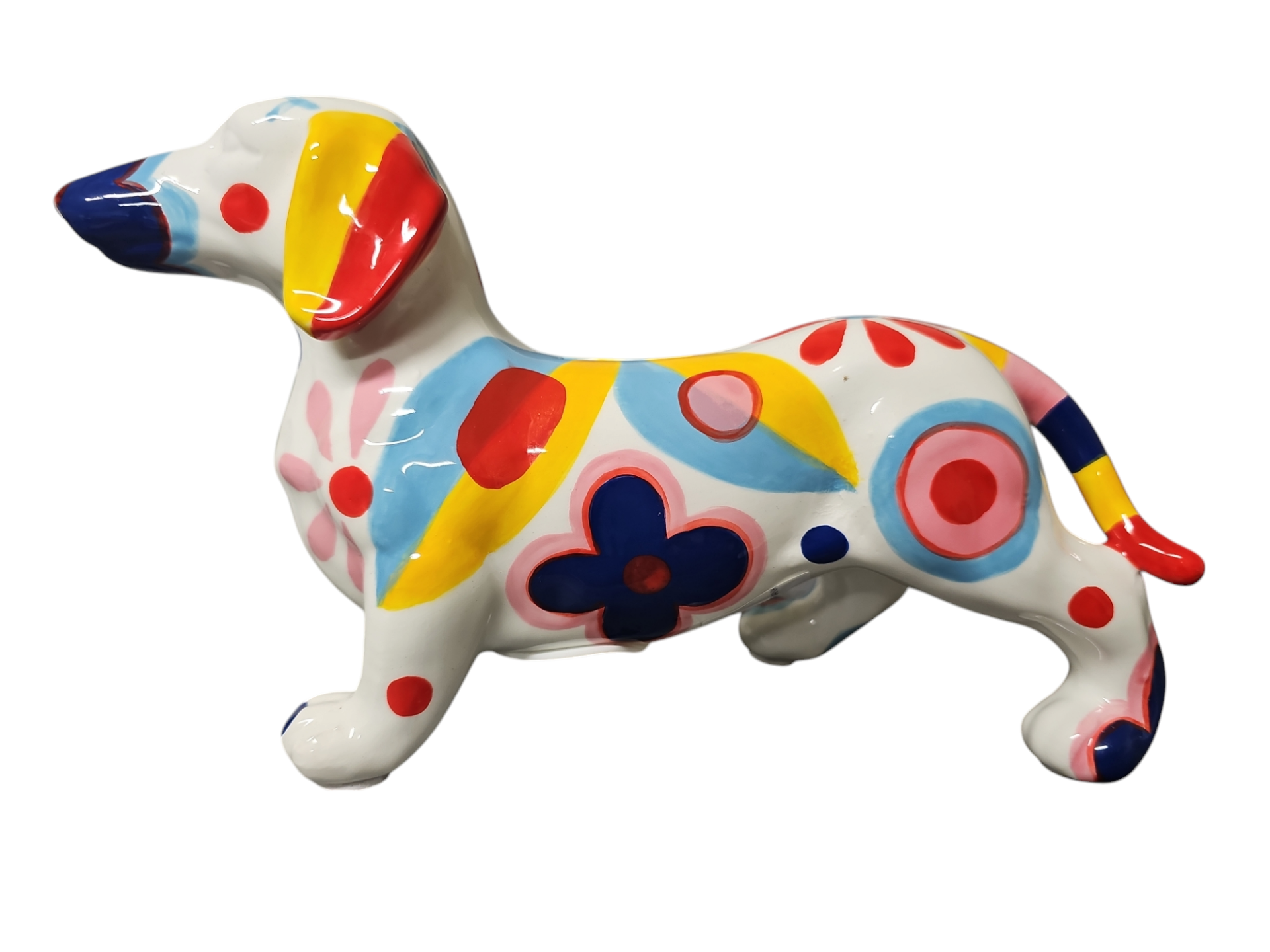 De Pomme-Pidou Teckel Franky Blossom is een vrolijke en kleurrijke spaarpot in de vorm van een teckel. Deze schattige spaarpot is ideaal voor kinderen én volwassenen die wat extra vrolijkheid in hun interieur willen. Gemaakt van keramiek en beschilderd in een unieke bloemetjesprint, zorgt hij voor een speels accent in elke kamer. Perfect om sparen leuker te maken!