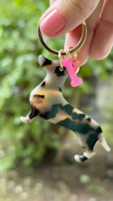 Maak een stijlvol statement met de Sleutelhanger Teckel Liesl van By Vivi! Met een chique schildpadprint, felroze botje en goudkleurig hartje is deze lichtgewicht en duurzame sleutelhanger perfect voor teckelliefhebbers. Ideaal als accessoire voor je sleutels of tas en een prachtig cadeau.