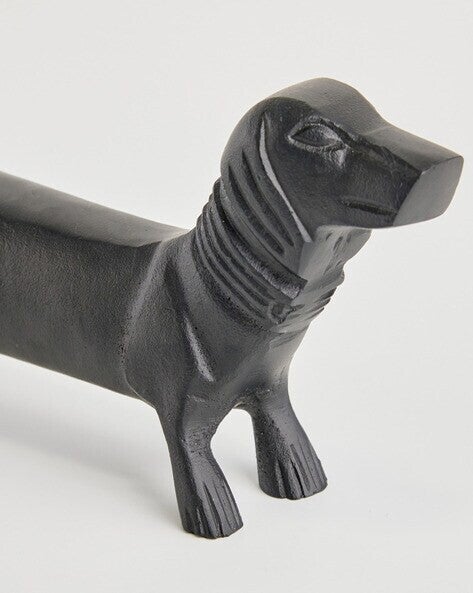Breng een eigentijdse touch aan je interieur met dit stijlvolle aluminium teckelbeeldje. Het strakke, minimalistische ontwerp en de matte zwarte afwerking maken het een perfecte blikvanger voor elke designliefhebber. Met een lengte van 49 cm en een breedte van 14 cm is dit duurzame decoratiestuk ideaal om je woonkamer, kantoor of slaapkamer een uniek accent te geven. Ook een perfect cadeau voor teckel- en interieurfans!
