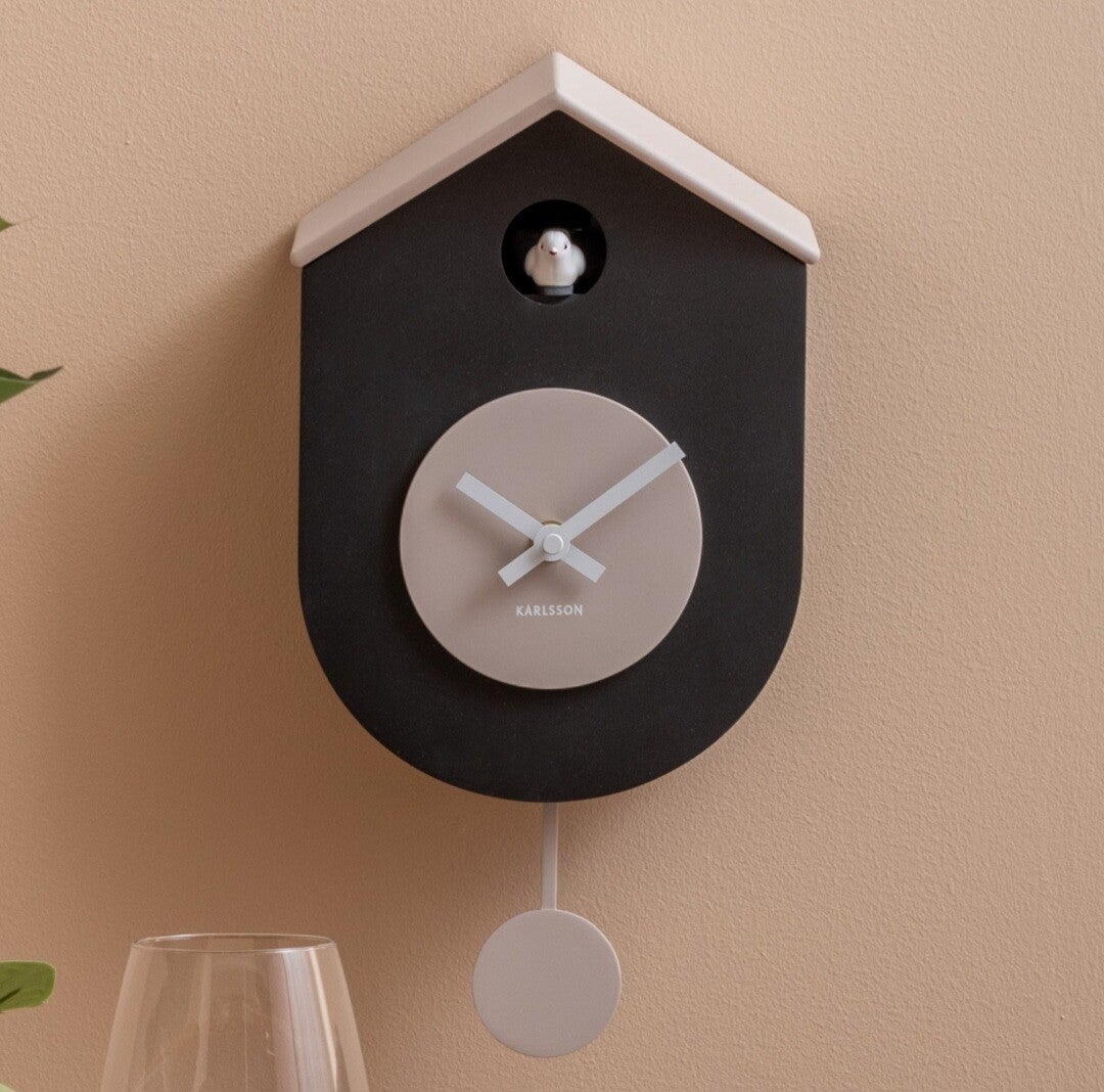 Op elk heel uur laat de koekoek zich horen en zorgt hij voor een glimlach – een charmant detail dat nostalgie en design verenigt. De subtiel bewegende slinger voegt daarbij een rustgevend ritme toe aan je kamer.