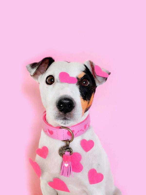 Maak elke wandeling bijzonder met de Sweety – een stijlvolle roze leren hondenhalsband met speelse hartjes. Deze halsband uit de DWAM-collectie is niet alleen prachtig om te zien, maar ook ontworpen voor comfort en duurzaamheid.