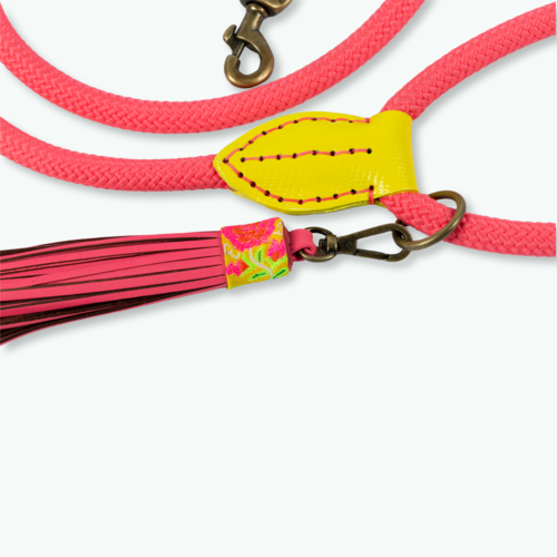 Geef elke wandeling een vrolijke twist met de Lotus hondenriem – een perfecte mix van stijl, comfort en kwaliteit. Deze stevige riem is gemaakt van geel canvas met een kleurrijk bloemendessin en afgewerkt met luxe messing hardware. Het met zachte stof gevoerde handvat ligt comfortabel in de hand, ook tijdens langere wandelingen.