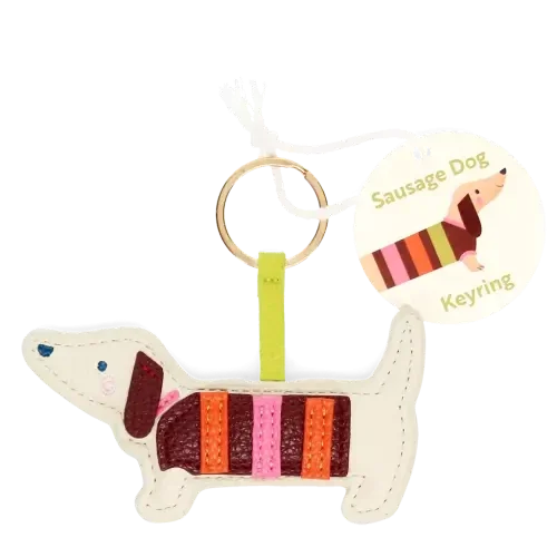 Fleur je tas of sleutelbos op met deze charmante teckelsleutelhanger, speciaal voor hondenliefhebbers! De sleutelhanger is gemaakt van lagen gekleurd kunstleer en afgewerkt met een stijlvolle champagnekleurige splitring. Lichtgewicht én opvallend – zo vind je je sleutels in één oogopslag terug én geef je je dag een vrolijk kleurtje.