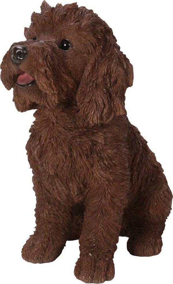 "Deze lieve bruine Labradoodle is met de hand afgewerkt van duurzaam polystone en oogt bijna levensecht! Het weerbestendige beeld is geschikt voor binnen en buiten en brengt gezelligheid in huis, tuin of op het terras. Met een hoogte van 31 cm, breedte van 20 cm en diepte van 37 cm is het een charmante blikvanger.
