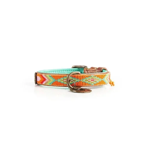 De Tiger Lily hondenhalsband uit de Beads Collectie is een echte blikvanger. Gemaakt van hoogwaardig bruin leer en afgewerkt met een handgemaakt kralenpatroon, combineert deze halsband stijl, comfort en duurzaamheid. Het kleurrijke design geeft je hond een unieke, bohemian uitstraling, terwijl de stevige materialen zorgen voor jarenlang plezier.