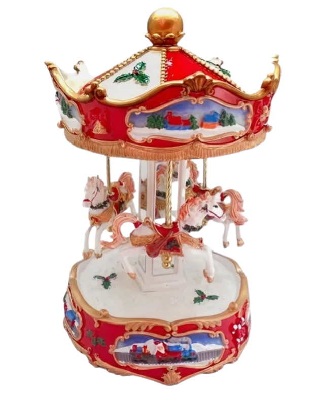 Met zijn formaat van ca. 14 × 8 × 14 cm is het een echte blikvanger in elke kamer. Perfect voor de kerstperiode, maar minstens zo mooi als cadeau bij een geboorte, verjaardag of voor iedereen die dol is op klassieke carrousels en sfeervolle decoratie.